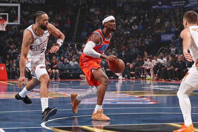 次节比赛,雷霆连续两节单节轰下35+得分,且连续两节限制太阳单节不超过25分。雷霆率先连得5分扩大20分优势,太阳一波11-2攻势追到差11分,雷霆继续扩大优势,但之后被追到54-42领先。雷霆在亚历山大与杰伦引领下,打出一波20-6攻势瞬间拉开比分,雷霆单节36-25净胜11分,上半场结束雷霆扩大74-48领先太阳26分优势。前两节比赛,雷霆43中26超过6成准星,其中三分19中13接近7成准,亚历山大17+6、霍姆格伦13+5与杰伦11+4+3;太阳46中18不足4成准星,其中三分15中7,狄龙14分。
